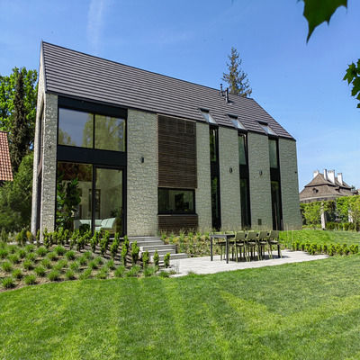 Lokalizacja budynku w sąsiedztwie parku z wiekowymi drzewami zapewnia wyjątkową atmosferę i bliski kontakt z naturą. Przestronny ogród, otaczający dom, oferuje możliwość aranżacji różnorodnych stref relaksu, co czyni ten projekt idealnym miejscem dla osób ceniących sobie prywatność, komfort oraz bliskość natury.